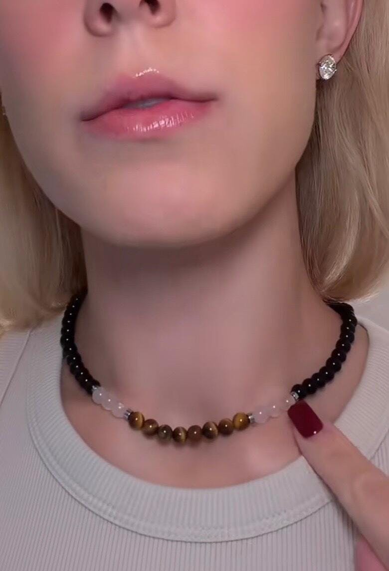 Repel negativity, attract love, reveal truth, and improve the clarity of your circumstances. Obsidian, Rose Quartz, Tiger's Eye, and Hematite, a combination of stones to improve the energy in your field.
